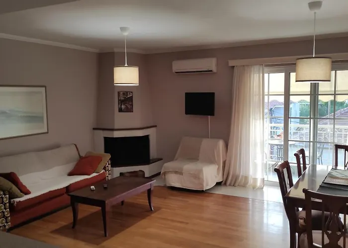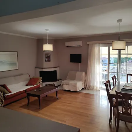 Featuring parquetry floors, a balcony and a sitting area also have a flat-screen TV with satellite channels. The interior elements include a sofa set, as well as a fireplace and soundproof windows. Enjoy the comfort of a bathroom in the 1-room Moiras Central Apartment, which is equipped with a hair dryer and bath sheets. Additionally, you'll find a bath.